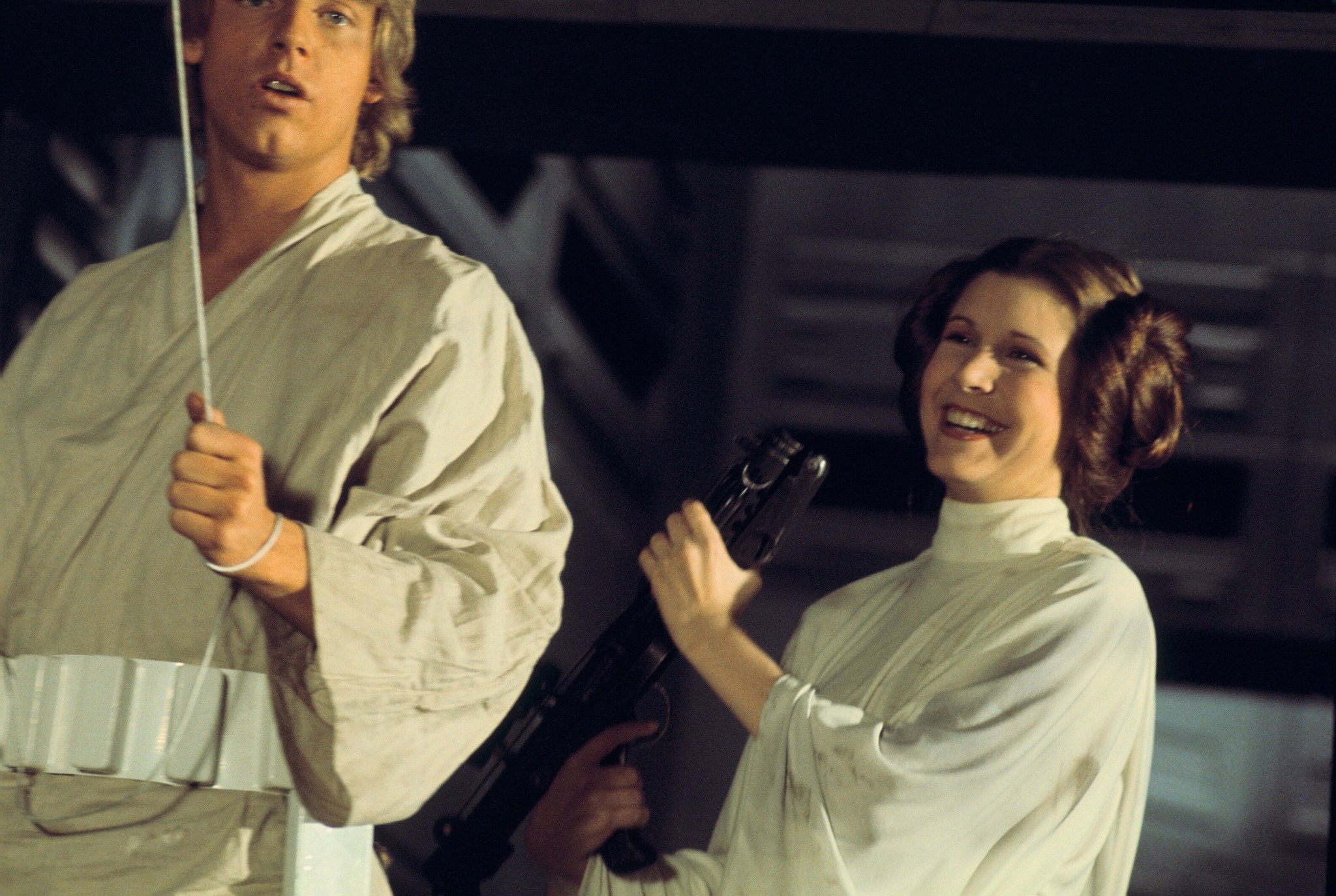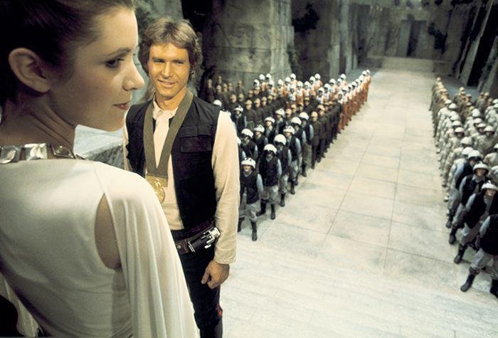 Carrie Fisher 1979-ben egy New York-i lőtéren gyakorol, hogy felkészüljön A Birodalom visszavág című filmben előforduló harci jelenetekre. 2008-as könyvében, a Wishful Drinkingben Fisher így ír: „George arra is rávett, hogy lövészetórákat vegyek, mert az első filmben rettenetesen grimaszoltam az effekt csapat által a forgatáson használt petárdák fülsiketítő hangjától. Ugyanahhoz küldött, aki Robert De Niro-nak megtanította a fegyverek használatát a Taxisofőrben” – mesélte. A lőtér, ahol gyakorolt, „egy kis pincében volt Manhattan belvárosában, tele rendőrökkel és mindenféle fegyverrajongóval. … Miután egy nagyon kedves exrendőr oktatott, jártas lettem a különféle fegyverek használatában, beleértve a dupla csövű puskát is” – tette hozzá. „A családom nagyon büszke volt rám.”- Háttérben lévő érdekességek, történetek